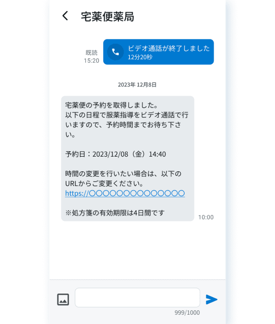 • クリニックでの受診直後に、オンライン服薬指導の予約メッセージが届きます